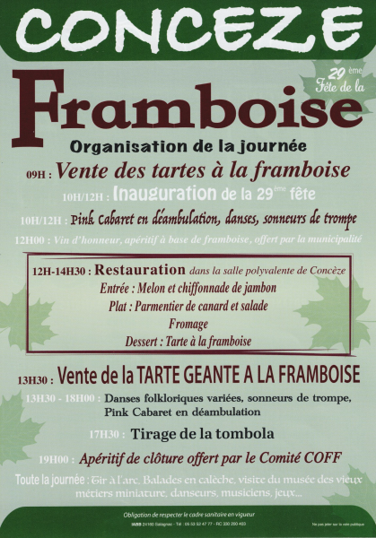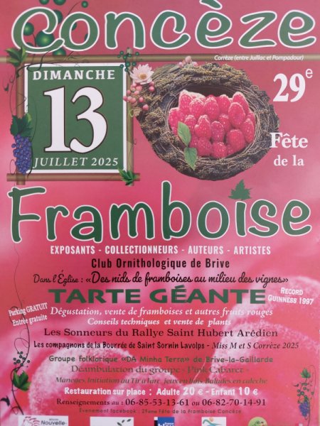 Le 13 juillet à Concèze, pour la 29ème année ce petit fruit si parfumé, couleur rubis, la Framboise, sera la reine.